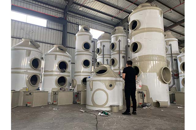 PP噴淋塔也叫做PP洗滌塔、酸霧凈化塔--酸堿廢氣處理設備;噴淋塔工作原理:廢氣由風管引入凈化塔,經(jīng)過填料層,廢氣與吸收液進行氣液兩相充分接觸吸收中和反應,廢氣經(jīng)過凈化后,再經(jīng)除霧板脫水除霧后由風機排入大氣。廢氣達到地方排放標準的排放要求。